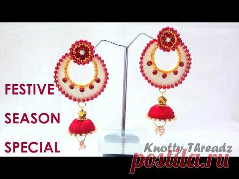How to make Chandbali Jhumka Ear Rings using Silk Thread Tutorial !!
