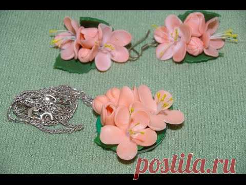 Урок №16 Кулон и серьги из полимерной глины. Цветы яблони или граната! Polymer Clay