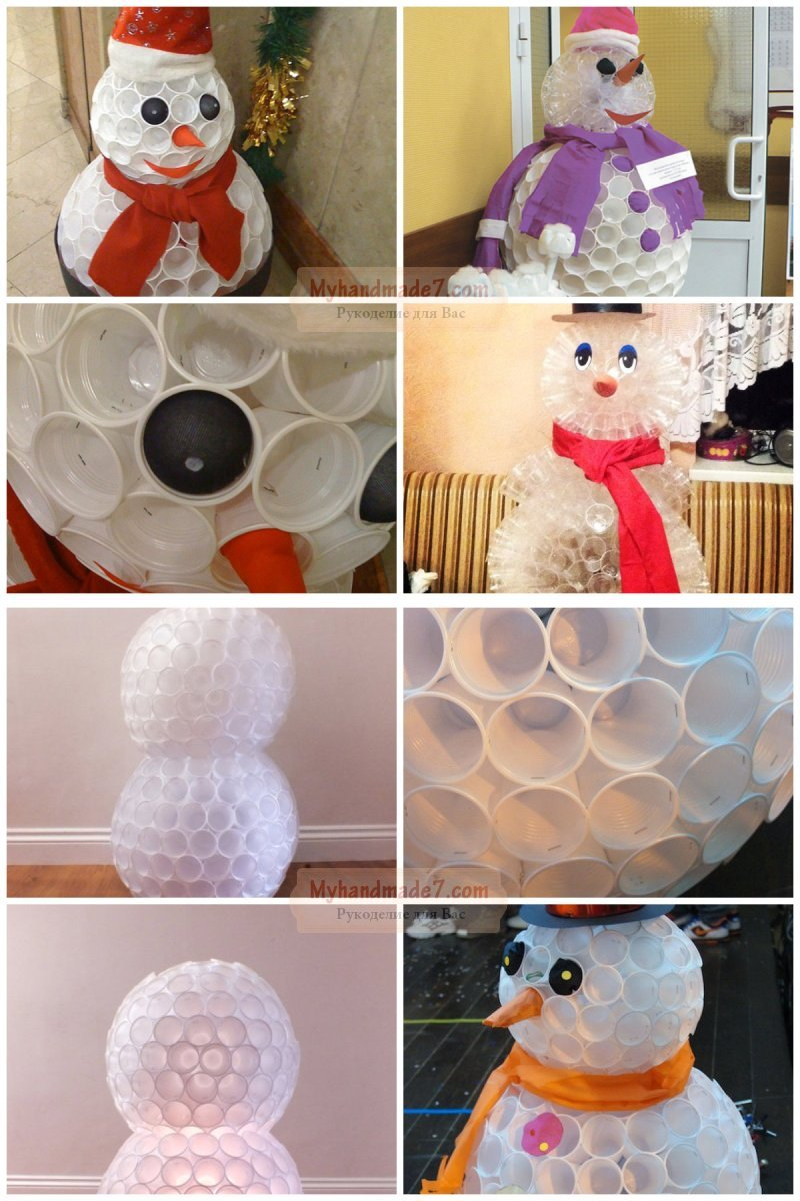 Снеговик из пластиковых стаканчиков. Отличные варианты поделки