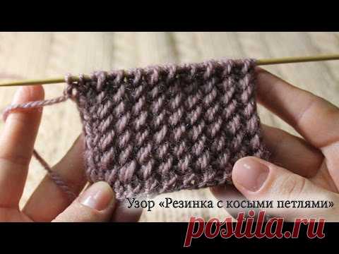 Узор «Резинка с косыми петлями» спицами, видео урок
