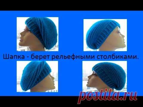 Шапка - берет рельефными столбиками.Cap - takes Crochet