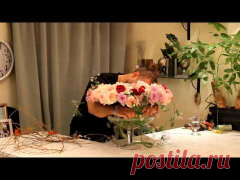 Уроки флористики Славы Роска. Французский букет из душистых роз на каркасе из вербы.