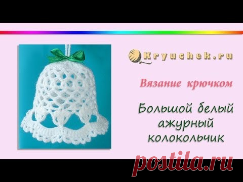 Крючок. Большой белый ажурный колокольчик (Crochet.Large white openwork Christmas bell)