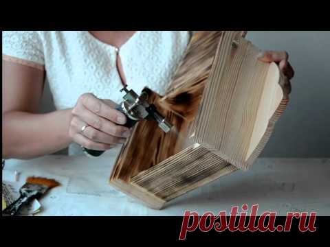 biruza-panova.com МК Ключница "Лавандовое настроение" Обжиг и браширование древесины