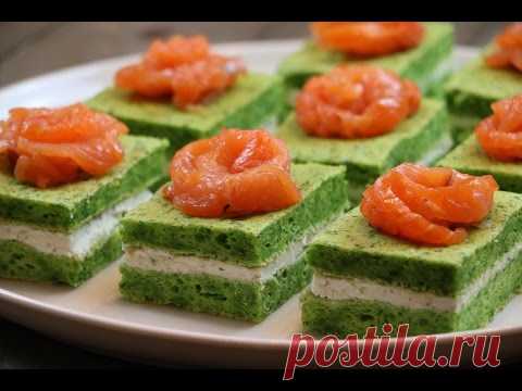 Закусочные пирожные с семгой и творожным сыром. Видео рецепт.