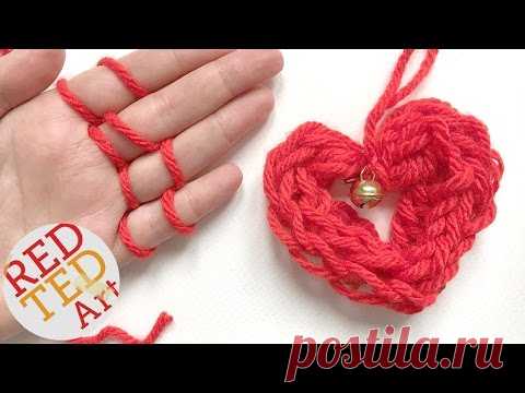 Easy Finger Knitting How To - DIY Heart Ornament - Christmas DIYs