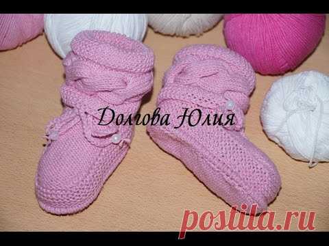 Вязание спицами. Пинетки с косами /// Knitting for beginners. Booties with braids
