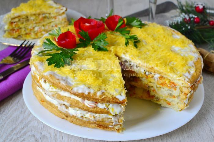 Закусочный торт из коржей для Наполеона с рыбной консервой. Рецепт с пошаговыми фото | Все Блюда