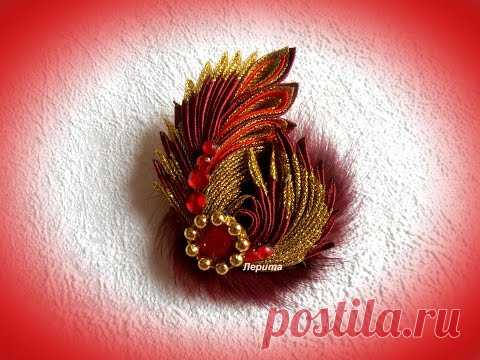 Брошь из ленты 2,5 см своими руками для шапочки, канзаши, МК