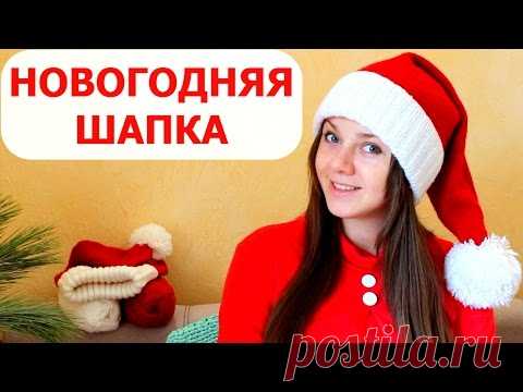 НОВОГОДНЯЯ ШАПКА "ДЕД МОРОЗ" или ШАПКА САНТЫ. ВЯЗАНИЕ СПИЦАМИ. How to knit Santa Hat