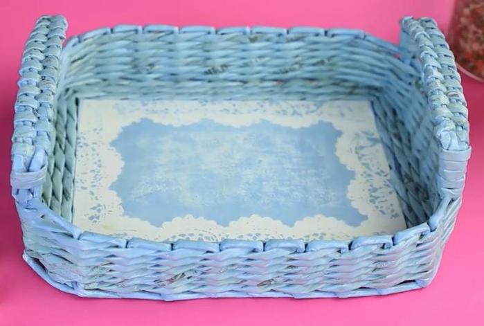 Поднос из плетеных газетных трубочек своими руками