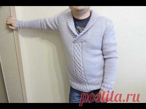 Мужской свитер с большим воротником спицами // Часть 6// Для начинающих