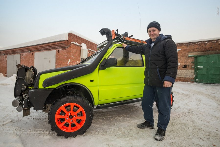 «Ока»: я стала джипом! | Чёрт побери Новосибирец превратил «Оку» в самый настоящий внедорожник с «автоматом» и правым рулем — теперь она проходимей «Лэнд Крузера» и УАЗика. ??Новосибирец Иван Московкин переделал свою «Оку» 2001 года выпуска в настоящий джип с «автоматом», ABS, кондиционером и правым рулем. Двигатель и основные агрегаты он взял от автомобиля-донора Toyota Funcargo, а внедорожные колеса от мини-трактора. Теперь он спокойно ездит там, куда не суются даже УАЗи...