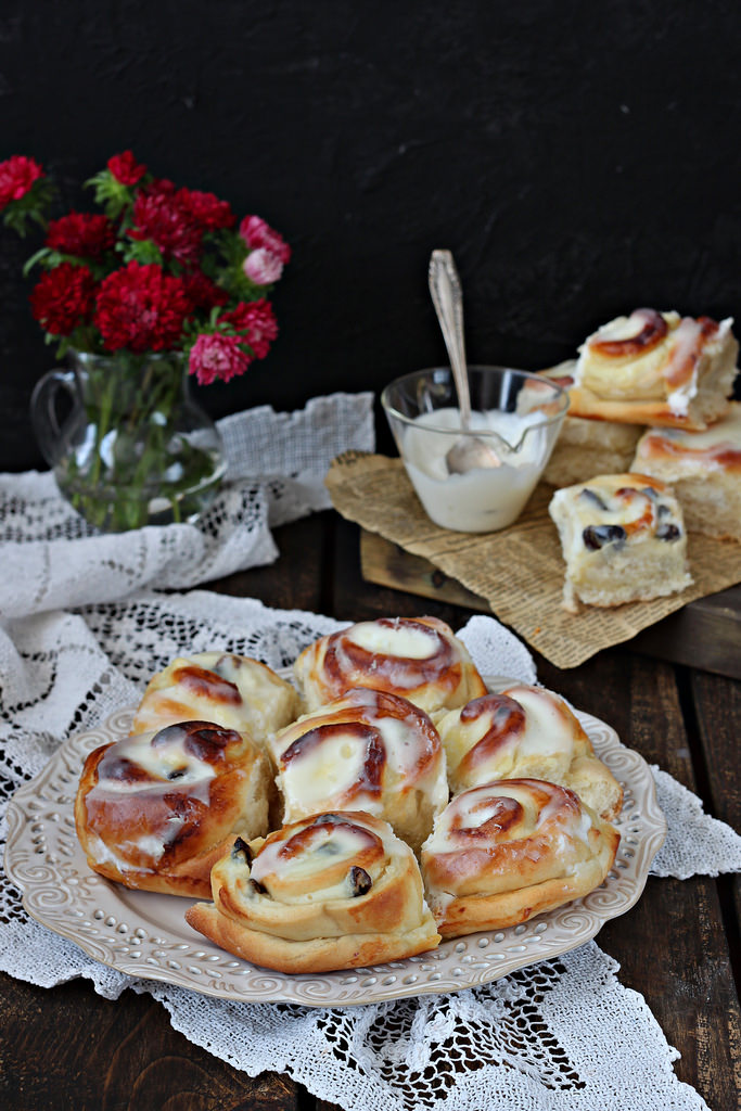 Булочки с рикоттой и клюквой с сливочной глазурью - Сладкий мир