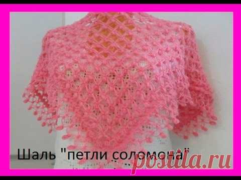 Шаль соломоновыми петлями и пышными столбиками.Crochet Schal