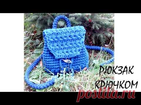 Рюкзак из трикотажной пряжи. Вязание крючком. Backpack of knitting yarn. Crochet.