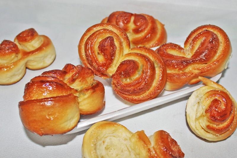 - Шаг 1: Как испечь сахарные булочки? Подготовьте необходимые ингредиенты. Берите качественную пшеничную муку высшего сорта. От этого во многом будет зависеть качество выпечки. Покупая сухие дрожжи, читайте инструкцию. Активный вид дрожжей необходимо предварительно развести в теплой жидкости. Инстантные сухие дрожжи добавляются непосредственно в тесто.Шаг 2: Для начала поставьте опару. Активные сухие дрожжи залейте теплым молоком, добавьте 1 столовую ложку сахара, перемешайте и оставьте в теплом месте на 15-20 минут. За это время опара поднимется и на поверхности образуется пенная шапочка.Шаг 3: В отдельной емкости размешайте яйцо, сахар, соль. Влейте подсолнечное рафинированное масло и перемешайте.Шаг 4: Влейте в миску с яичной смесью опару, перемешайте. Просейте муку, чтобы выпечка была более воздушной, добавьте и замесите мягкое, эластичное, не липнущее к рукам тесто.Шаг 5: Накройте тесто кухонным полотенцем и оставьте в теплом месте подниматься. Можно поставить в духовку, разогретую на 30-40 градусов. Когда объем теста увеличится в 2-3 раза, его нужно обмять, чтобы выгнать углекислый газ, препятствующий процессу брожжения. Теперь можно формировать плюшки.Шаг 6: Рабочую поверхность припыпьте мукой. Выложите тесто. Разделите его на шарики размером с мандарин.Шаг 7: Каждый шарик раскатайте в вытянутый прямоугольник (толщина около 3 мм).Шаг 8: Поверхность смажьте растопленным в микроволновке или на водяной бане сливочным маслом.Шаг 9: Посыпьте равномерно сахаром. Для аромата белый сахар можно смешать с 2 чайн. л. ванильного сахара или заменить его тростниковым сахаром, тогда вкус и аромат выпечки станет карамельным.Шаг 10: Сверните прямоугольник в рулет.Шаг 11: Сделайте поперечный надрез, не доходя до конца на 1 см.Шаг 12: Выверните плюшку (как показано на фото). Проделайте такие манипуляции с остальными шариками теста.Шаг 13: Противень слегка смажьте растительным маслом. Выложите заготовки на некотором расстоянии друг от друга, учитывая, что при выпекании они подрастут. Противень с булочками оставьте в теплом месте на 15 минут на расстойку. Затем отправьте в заранее разогретую (за 10-20 минут) до 180 градусов духовку. Выпекайте примерно 15-20 минут, ориентируясь на особенности своей техники.Шаг 14: Когда булочки подрумянятся, проверьте их на готовность: проткните деревянной шпажкой в нескольких местах, если шпажка выйдет сухой, значит противень можно доставать из духового шкафа. Для блеска готовые плюшки смажьте сладкой водичкой. Для этого в небольшой емкости разведите в кипяченой воде (1/8 стакана) сахар (3 чайн. л.).Шаг 15: Вкусные, воздушные плюшки готовы. Заваривайте чай и угощайтесь. Приятного аппетита!