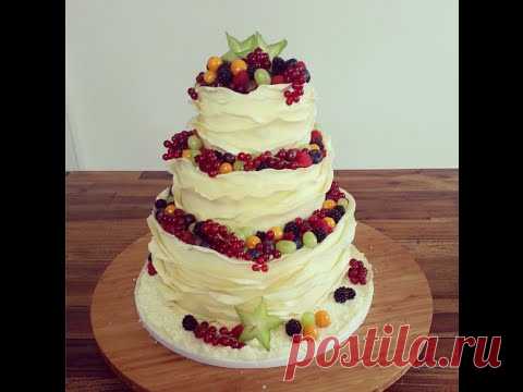 dreistöckige fruchtige Hochzeitstorte ohne Fondant :) Deko-Idee mit Modellierschokolade