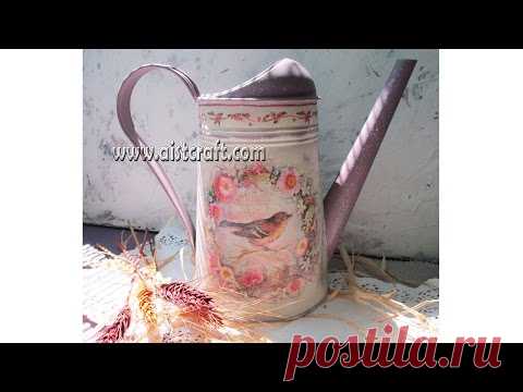 Decoupage tutorial on metal - DIY. Watering can decoration idea. Shabby Chick style.