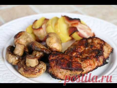 Стейки, шампиньоны и картошка с беконом на мангале | Открываем дачный сезон