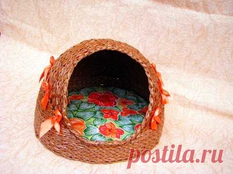 Как сплести домик для кошки из газетных трубочек