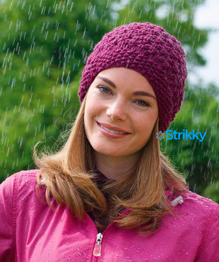 Шапка "Малинка" с рельефным узором и путанкой вязаная спицами