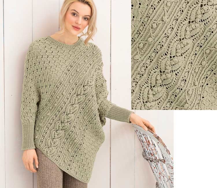 Сложный в исполнении и очень эффектный и необычный пуловер, скроенный на манер пончо, наверняка привлечет опытных мастериц.