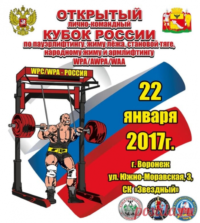 Кубок России по пауэрлифтингу WPA/AWPA/WAA Воронеж 2017 22.01.2017 Открытый лично-командный Кубок России по пауэрлифтингу, жиму лежа, становой тяге и армлифтингу WPA/AWPA/WAA
