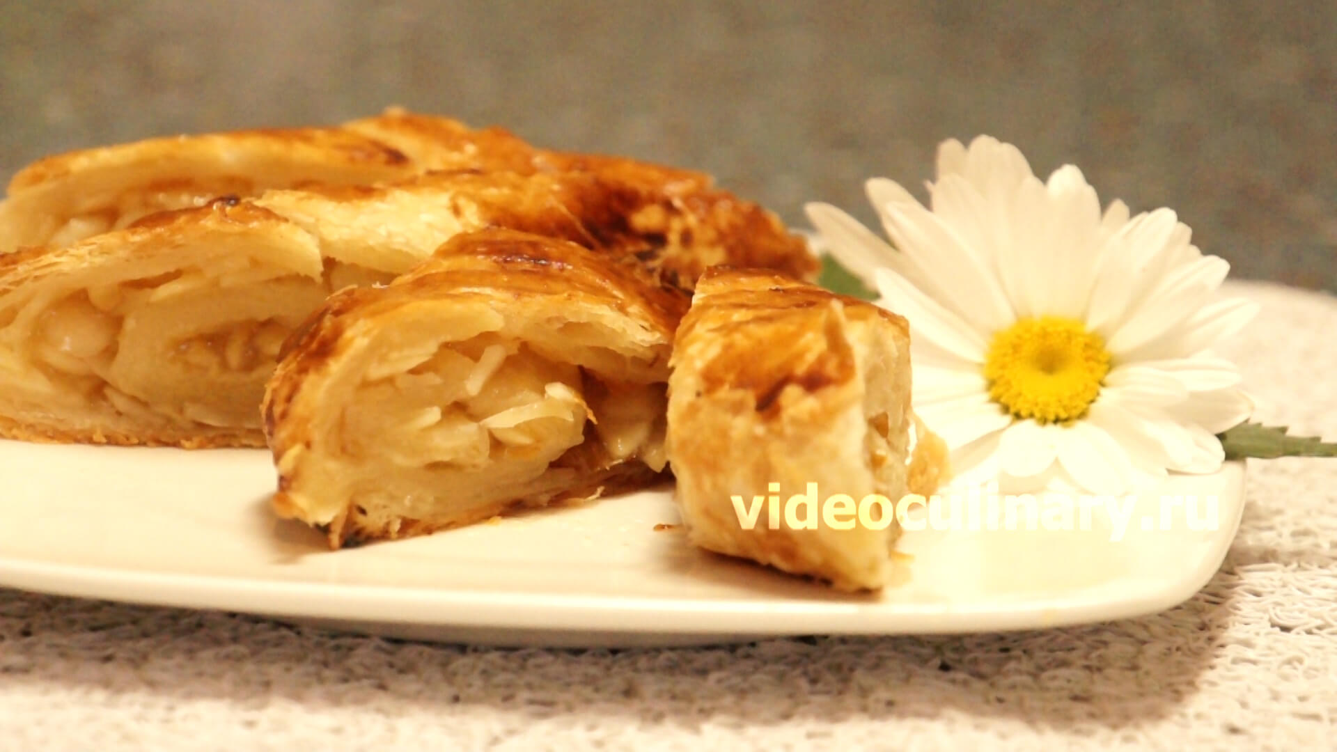 Рецепт Рулета - из Слоеного теста с Абрикосовым джемом У Вас есть слоёное тесто и абрикосовый джем? Как приготовить десерт, быстро? - Видео и Фото рецепт Абрикосового рулета из слоеного теста от Бабушки Эммы