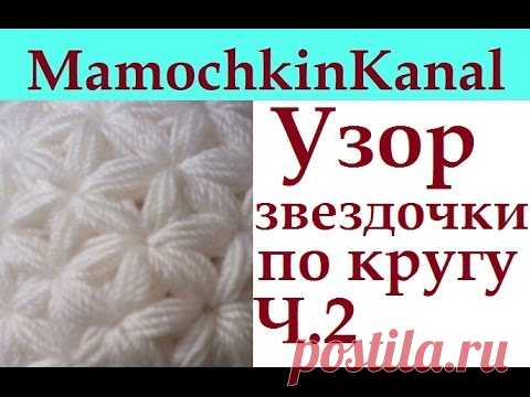 2 Узор крючком Звездочки по кругу для шапки, снуда Убавки Crochet Star Stitch pattern Decreases