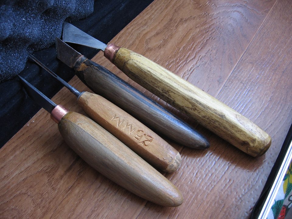 Крайние инструменты (сверху и снизу) сделаны из советской пилы. Отличная там на ней сталь (рапит)! Лучше, чем на круглых дисках от циркулярки. Только обрабатывается тяжелее.