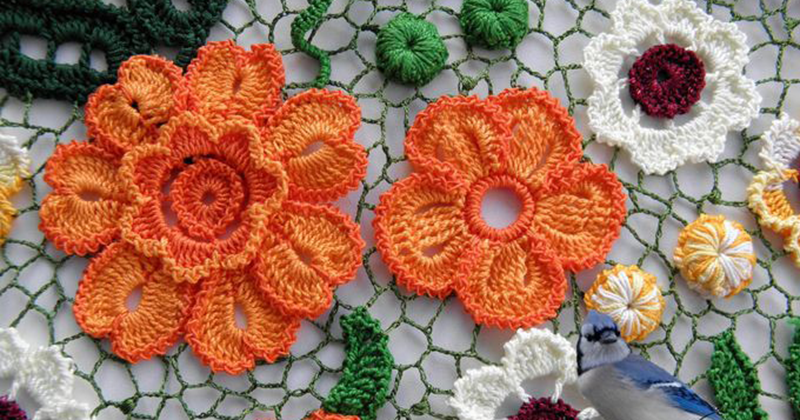 Вяжем крючком яркий цветок Расскажу, как я вязала основной мотив для платья «Солнечно». Он может быть использован для сборки кружева в технике «Современное ирландское кружево», или «Сцепное кружево (гипюр)», а также как элемент декора вязаных, валяных и тестильных сумок, подушек, одежды, как элемент для творчества в скрапбукинге. Для работы необходимы 2 оттенка оранжевого цвета, нить хлопковая, и крючок для вязания.