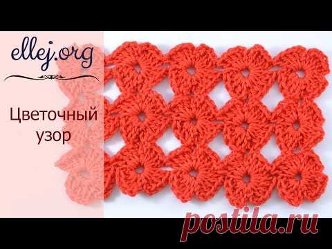 Цветочный узор крючком. Безотрывное вязание цветочков.