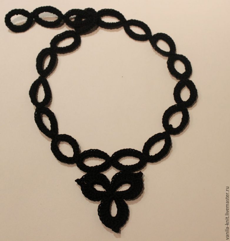 Оригинальное вязаное украшение на шею Одной моей знакомой очень нравятся вязаные украшения. И вот с очередным заказом, к новогодним праздникам я решила сделать ей подарок. А сейчас — поделиться с вами, как его сделать самим.