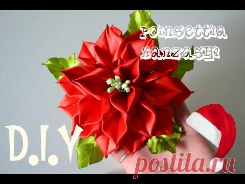 Пуансеттия/Poinsettia Kanzashi/Рождественский цветок/D.I.Y