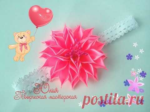 Цветок канзаши из ленты 2,5 см Детская повязка мастер-класс канзаши