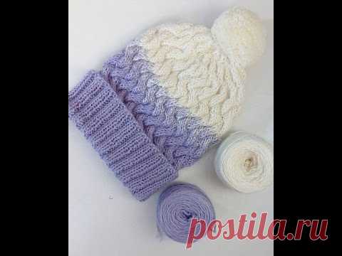 Шапка с узором плетенка. Шапка спицами. Вязание. Мастер класс.