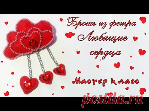 Брошь из фетра Любящие сердца на день влюбленных своими руками.DIY Brooch of felt on Valentine's Day - YouTube