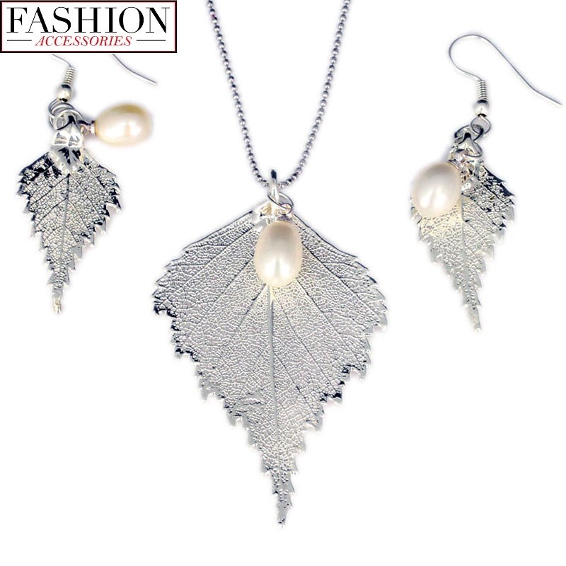 Комплект из Листа берёзы с жемчужиной (серебро)