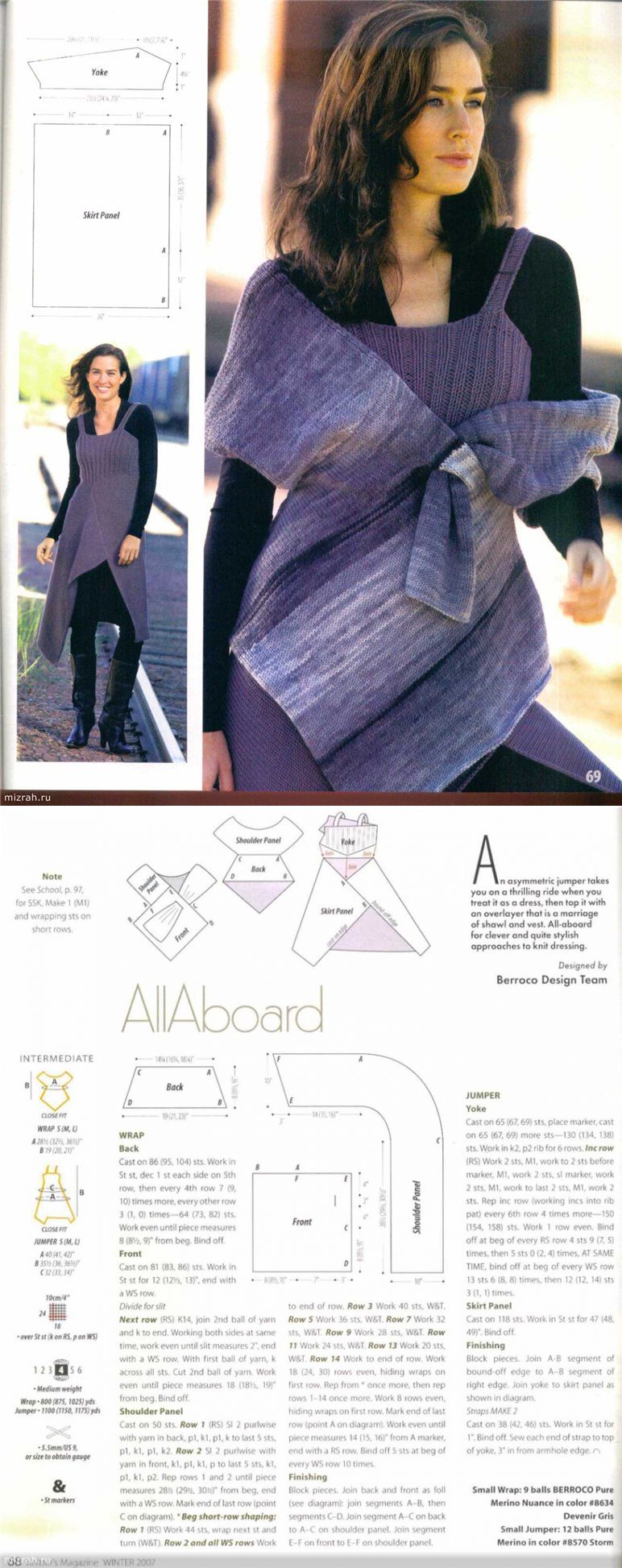 Асимметричные сарафан и шарф-жилет спицами. 3 размера.
