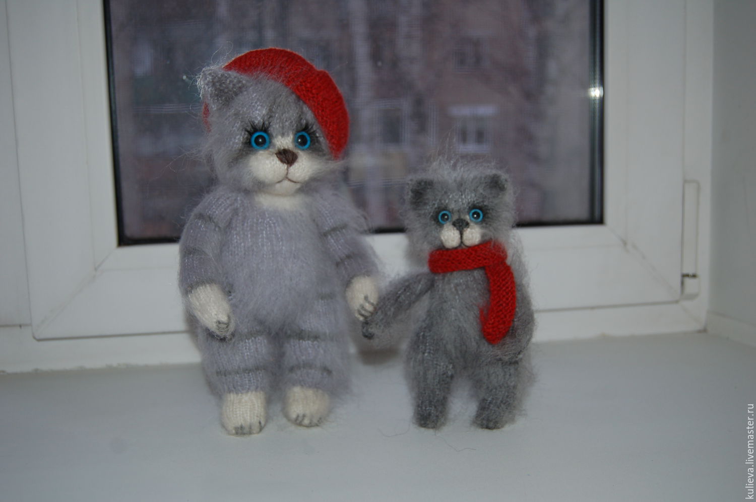 Купить Вязаная кошка с котенком. - серый, кот, кошка, котенок, вязаная игрушка, вязаный кот
