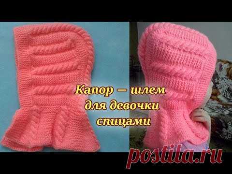 Капор — шлем для девочки спицами. Подробный видео урок по вязанию