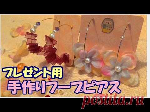 【For presents】 Homemade hoop pierced earring【ピアス台紙も手作り☆】 今回はとっても可愛いあじさい花びらと ずっと気になっていたオーガンジーのリボンを使ったフープピアスを作ります。 プレゼント用に作ったので、台紙も手作りです。