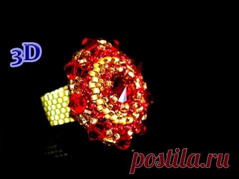 Beaded Ring with Swarovski Elements. 3D Beading Tutorial How to make Beaded Ring with Rivoli Swarovski, seedbeads and bicone beads. Handmade Beaded Jewelry Design. Beading Technique: Peyote Stitch. Pattern: http://...