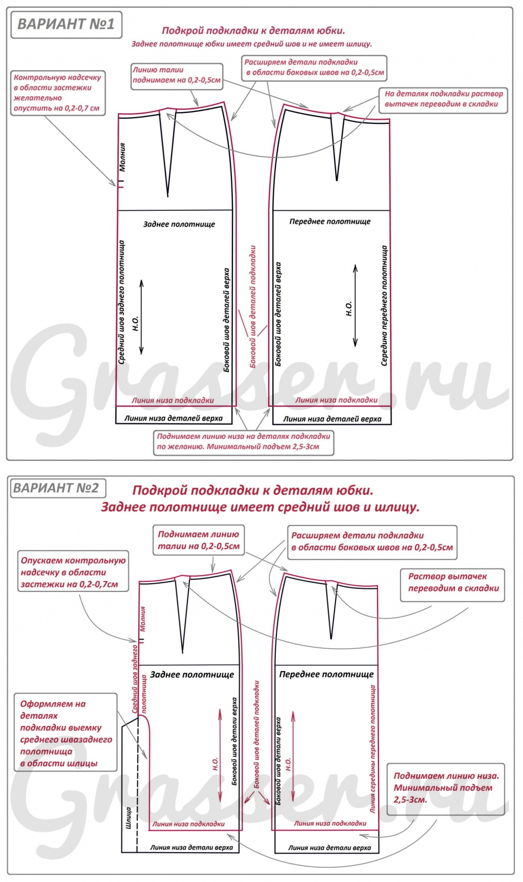 Подкрой подкладки к деталям юбки