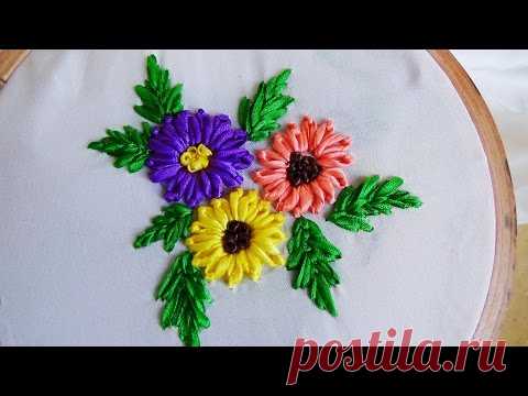 Hand Embroidery: Lazy Daisy Flower (in Ribbon Work)