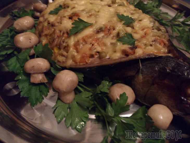 Скумбрия запеченная - праздничная Вариантов запечь скумбрию очень много, делюсь самым любимым. Он очень красивый, простой в приготовлении, и главное можно импровизировать с начинкой.Способ приготовления очень простой.Берём 2 свежеморо...