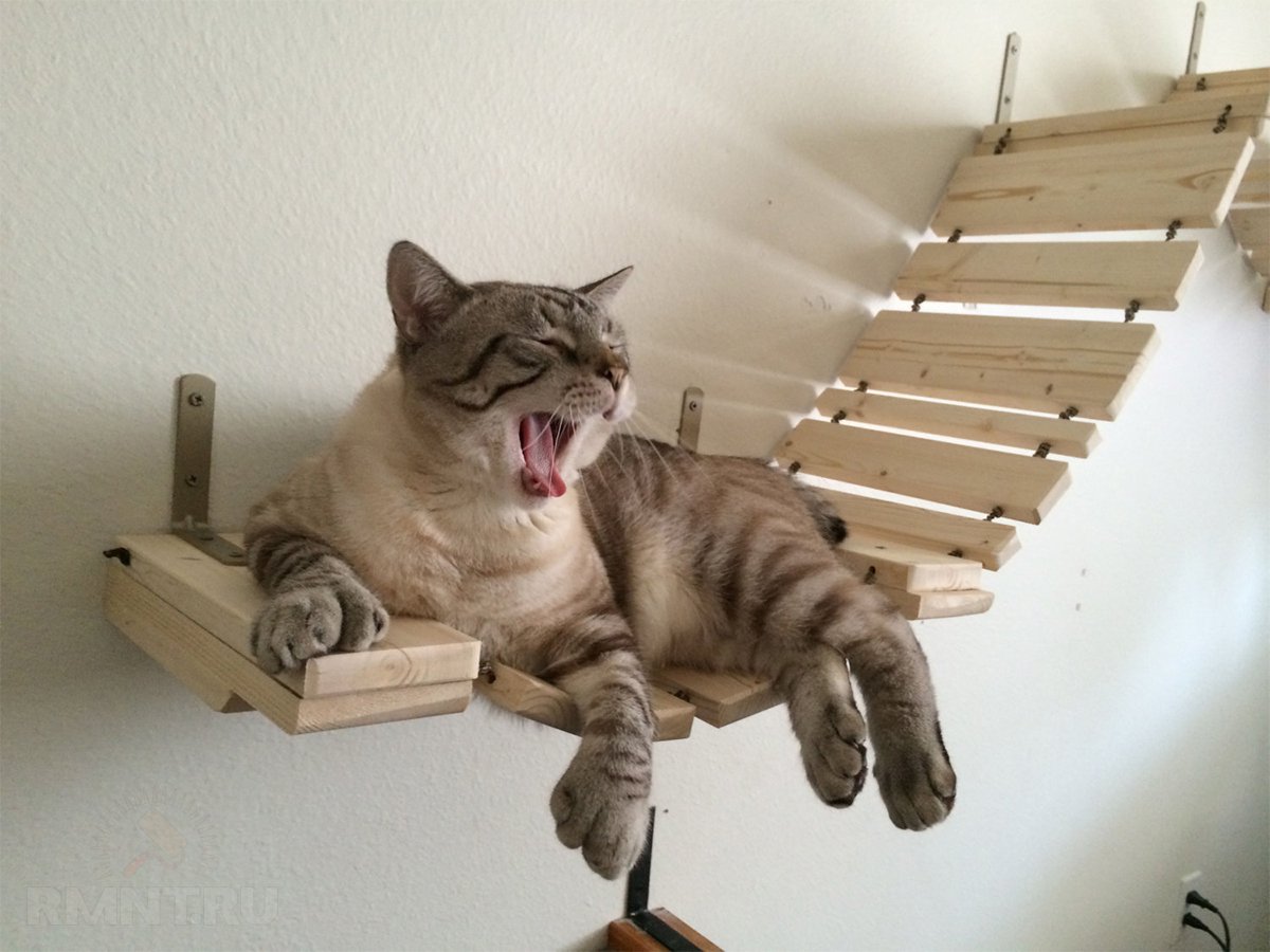 Игровая площадка для кошки в квартире Любителям домашних питомцев, а в особенности котов, будет весьма любопытно взглянуть на удивительные примеры игровых площадок, которые можно соорудить в собственной квартире. Собрать подобное своими руками довольно просто, и в выигрыше остаются все — котам есть, где погулять и развлечься, и мебель в доме однозначно останется гораздо целее.