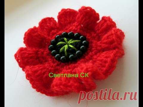 Брошь цветок крючком Мак crochet flower