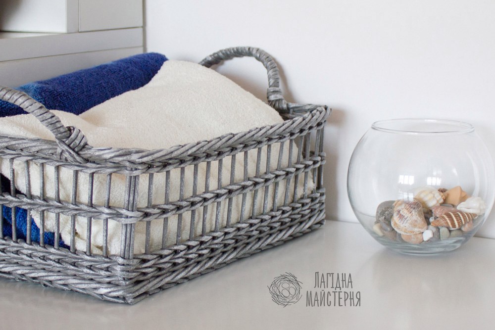 Матеріал не боїться вологих приміщень, тому кошики можна розташувати у ванній кімнаті.